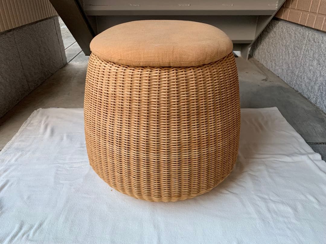 - サイが欲しく此方で見つけ嬉しかったです。。 置いてるだけでも可愛いですが、収納、80kg耐重で安心して座れます。 木脚は自分で取り付けですがネジ式で簡単、木脚底部用フェルトも付いてましたので、 フローリング等の傷防止に良いです。